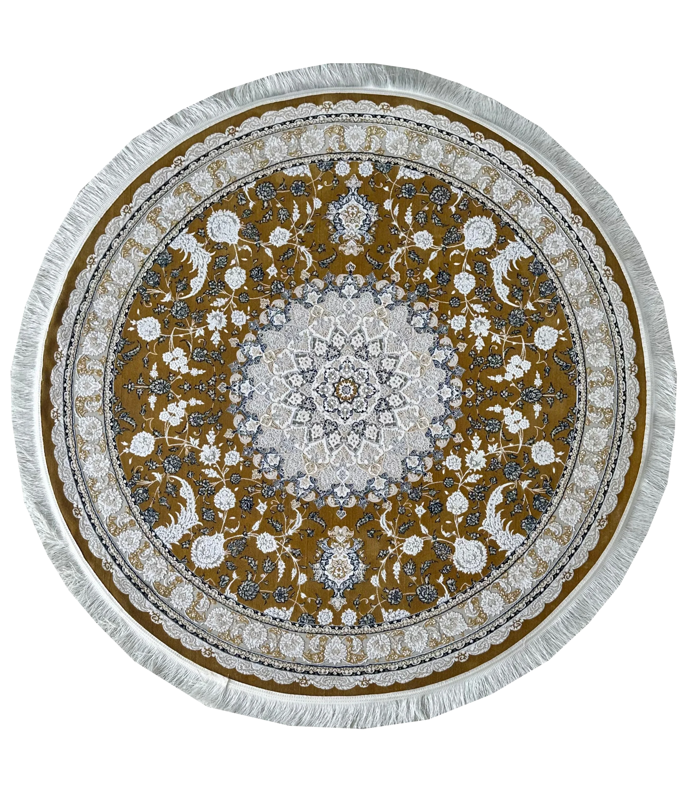 The Farsh GoldenWhite Circle Rug Irani 1200 Reeds is a stunning example of fine Persian design, now available through Iqbalcarpets. With its round silhouette, delicate golden and white palette, and intricate craftsmanship, this rug adds a refined touch to any interior. Designed with 1200 reeds for exceptional density and detail, it is an ideal choice for those looking to introduce timeless luxury into a formal living room, elegant foyer, or boutique hospitality space.