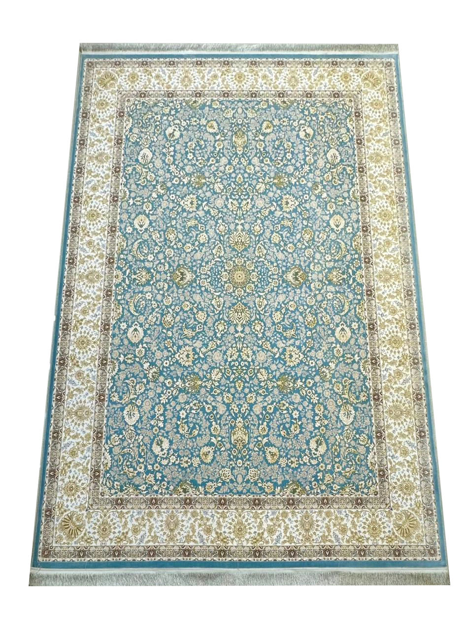 At Iqbalcarpets, we bring you some of the finest rugs sourced from trusted makers around the world. The Hedayati Carpets Farsh-e-Irani SkyBlue Gold Rug is a masterpiece that combines the timeless artistry of Persian design with the practical benefits of modern machine-made weaving. With its refined sky blue base, adorned by intricate golden accents, this rug exudes a luxurious aura that can transform any space into a statement of elegance.