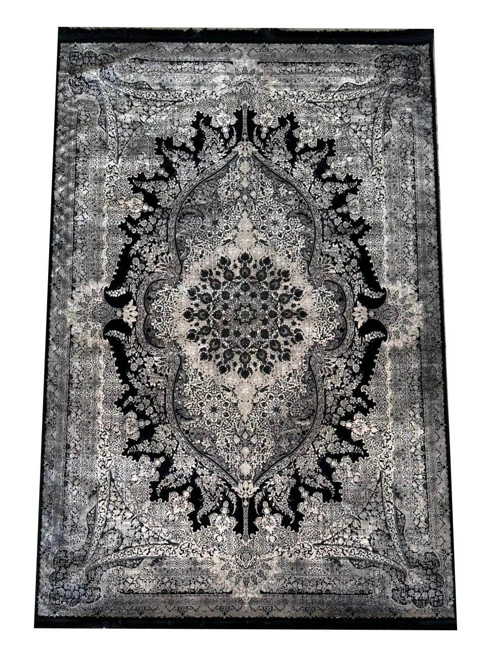 One of the defining features of this rug is its 1200 reeds construction, a mark of high-density weaving that delivers exceptional detail and clarity in the design. Higher reeds count allows for finer patterns, smoother texture, and a more refined surface finish. The Jordan Rugs BlackGrey piece showcases crisp motifs, delicate borders, and a harmonious flow of design that reflects the craftsmanship associated with premium Irani-style rugs.