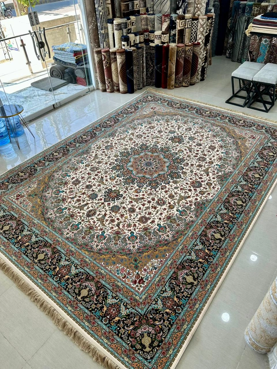 This design captures the timeless charm associated with Iranian-inspired patterns, featuring ornate floral borders and delicate central medallions that speak of heritage and craftsmanship. It is ideal for living rooms, drawing rooms, bedrooms, or lounges where you wish to create an atmosphere of quiet elegance.