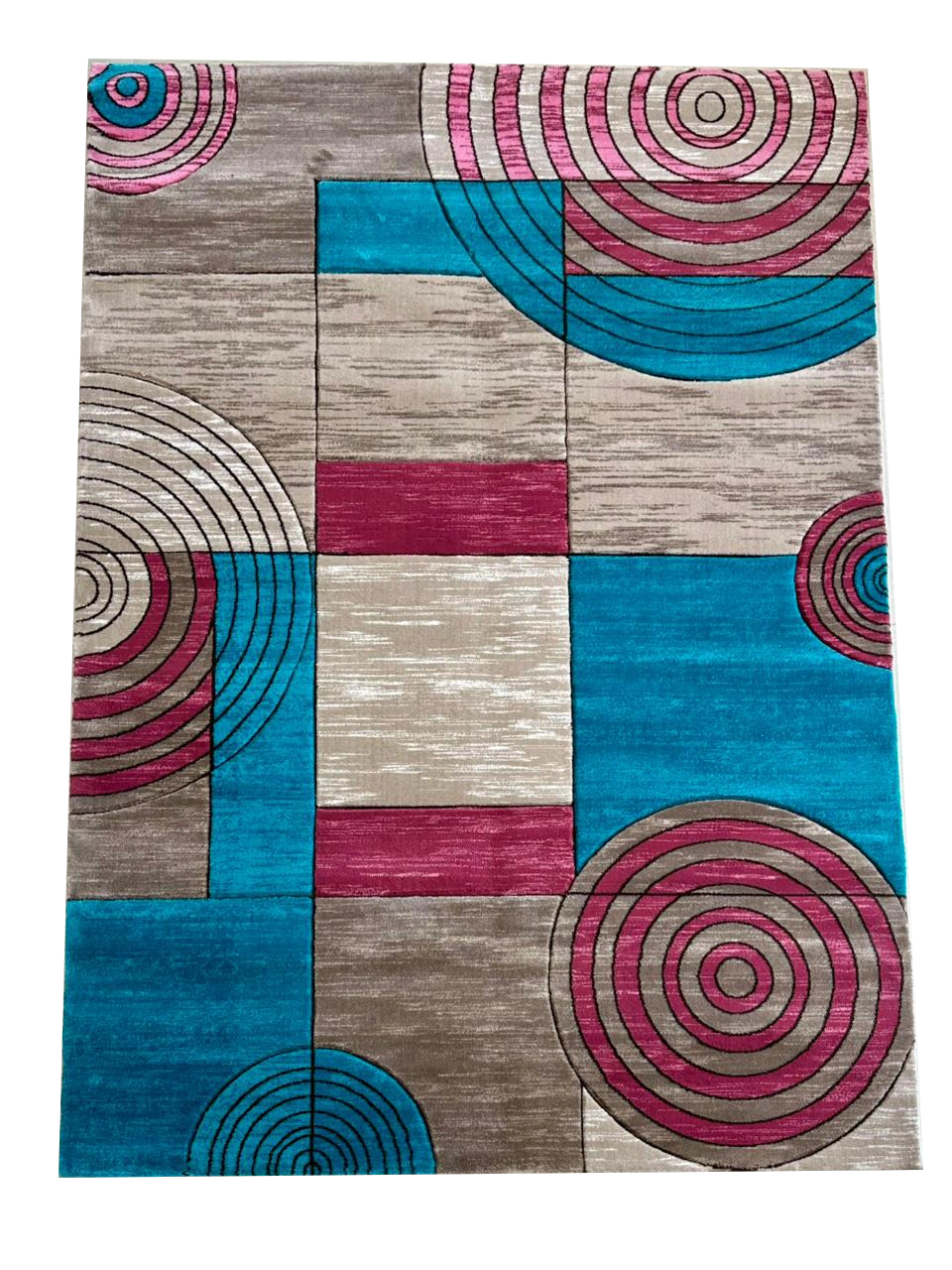One of the most appealing features of this rug is its vibrant turquoise and pink palette. The turquoise tones bring a calming yet refreshing presence, while the pink accents add warmth and liveliness. Together, they create a balanced design that feels artistic, elegant, and unique.